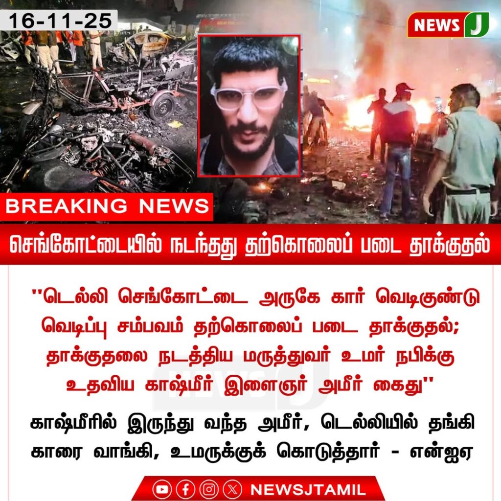 செங்கோட்டை அருகே திடீரென கார் வெடித்ததால் பகுதியெங்கும் பரபரப்பு ஏற்பட்டது. சம்பவ இடத்தில் பல வாகனங்கள் சேதமடைந்ததுடன், சிலர் காயமடைந்ததாக ஆரம்ப தகவல்கள் கூறுகின்றன. வெடிப்புக்கான காரணம் குறித்து விசாரணை தீவிரமாக நடைபெற்று வருகிறது.
