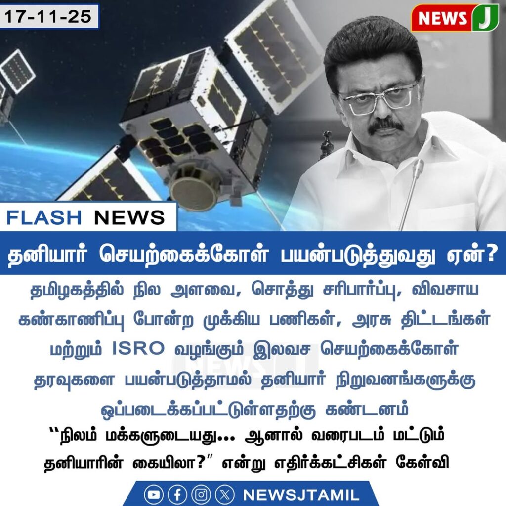 In Tamil Nadu, private satellite data is increasingly being used for critical tasks such as land mapping, property verification, and agricultural monitoring. Officials say this helps speed up operations with improved accuracy.