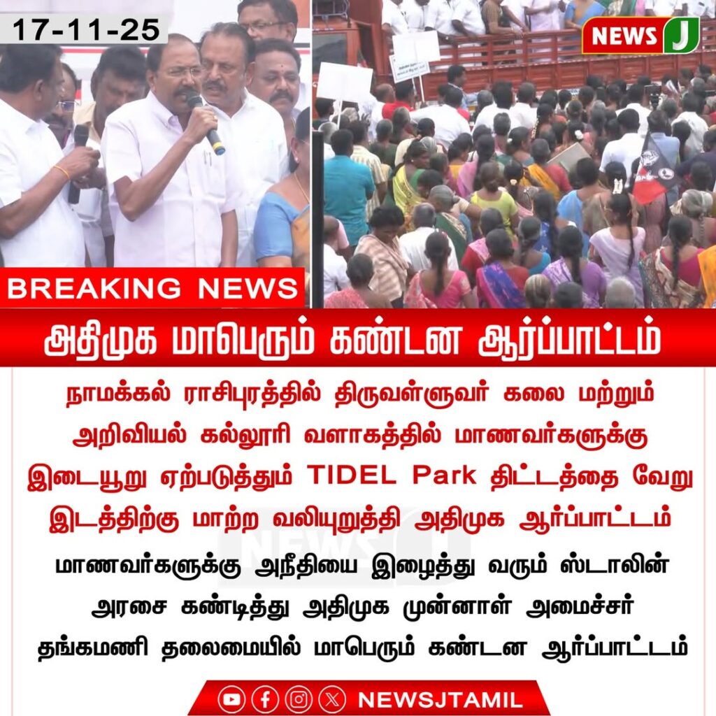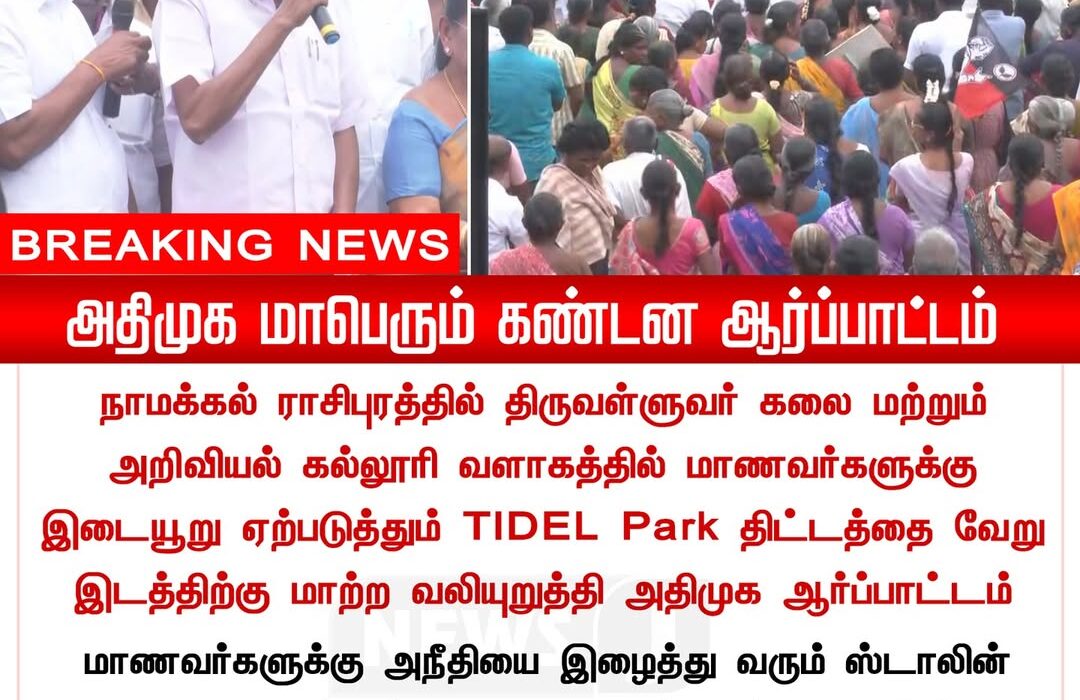 A large protest rally was organized by the AIADMK in Namakkal, condemning state decisions that the party claims may negatively affect students and local development. A significant crowd gathered, raising slogans and expressing concerns.