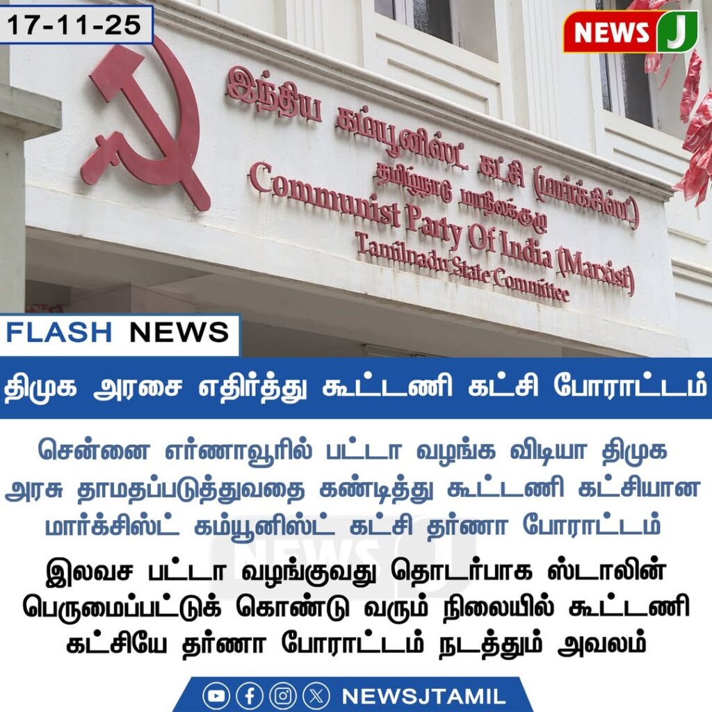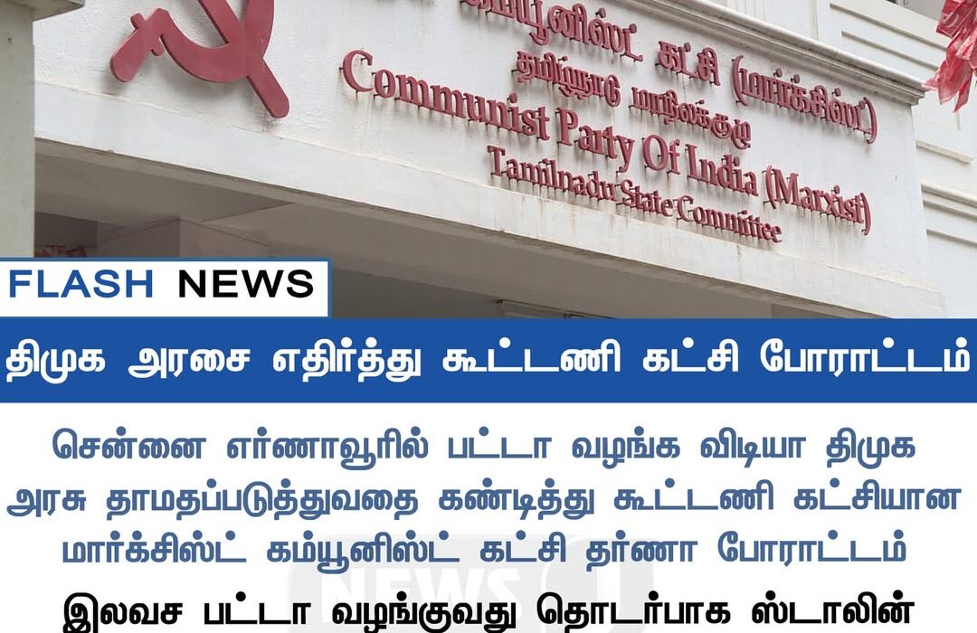 Alliance parties, including the CPI(M), staged a protest in Ennore, Chennai, alleging delays by the DMK government in issuing pattas. They claimed that public welfare-related processes are being slowed down unnecessarily.