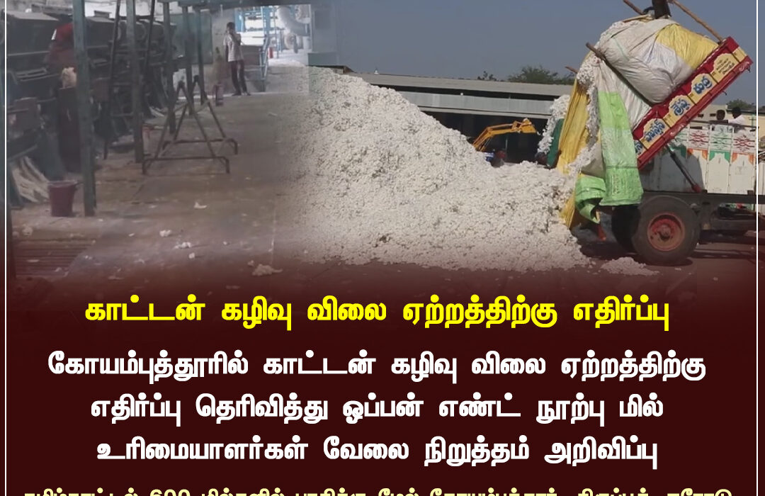 In Coimbatore, the continuous rise in cotton waste prices has triggered strong opposition from mill workers, forcing many units to halt operations. Workers say the price hike has pushed production costs up and disrupted regular work schedules.