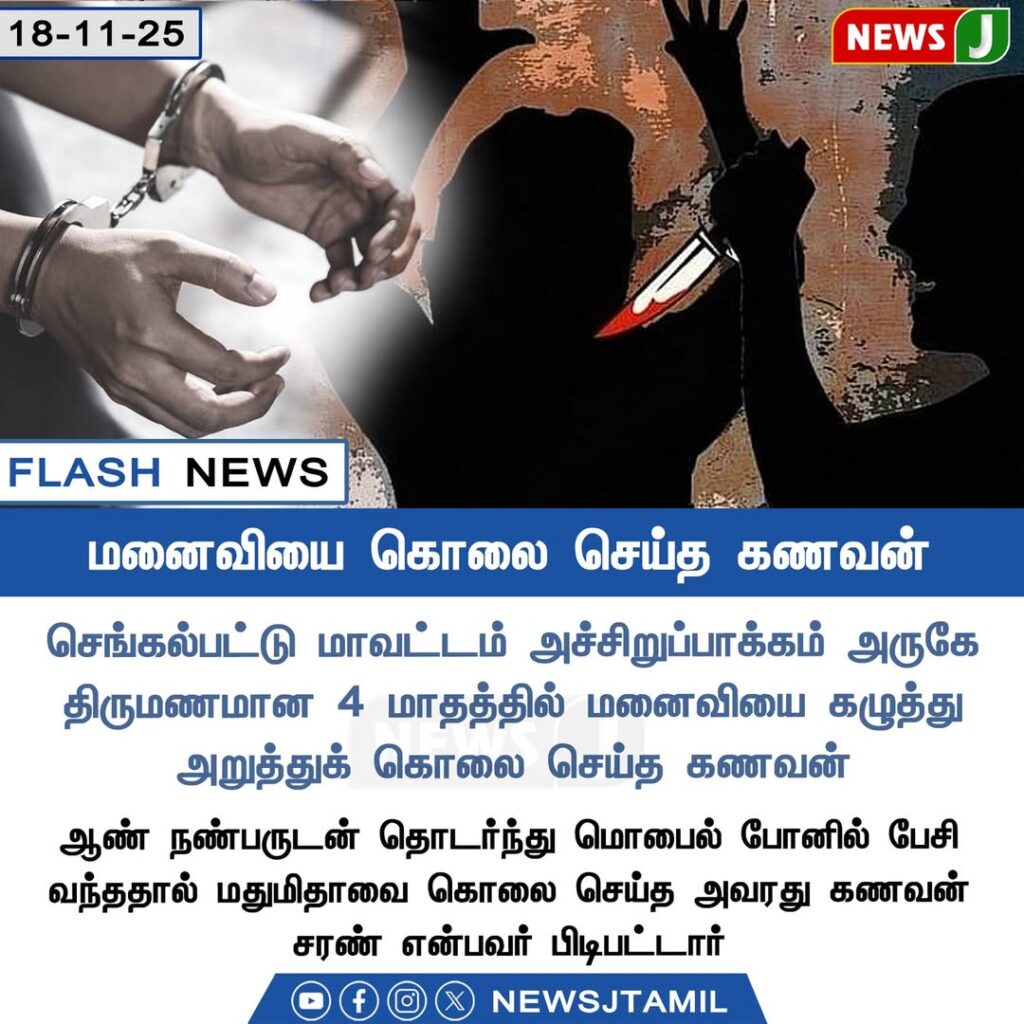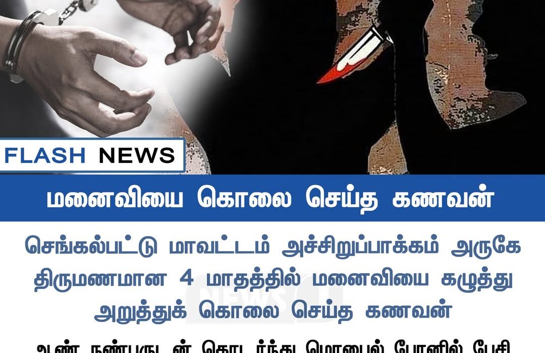 A husband in Chengalpattu district has been arrested for allegedly beating his wife to death just four months after their marriage. Police investigations suggest ongoing family disputes led to the tragic incident.