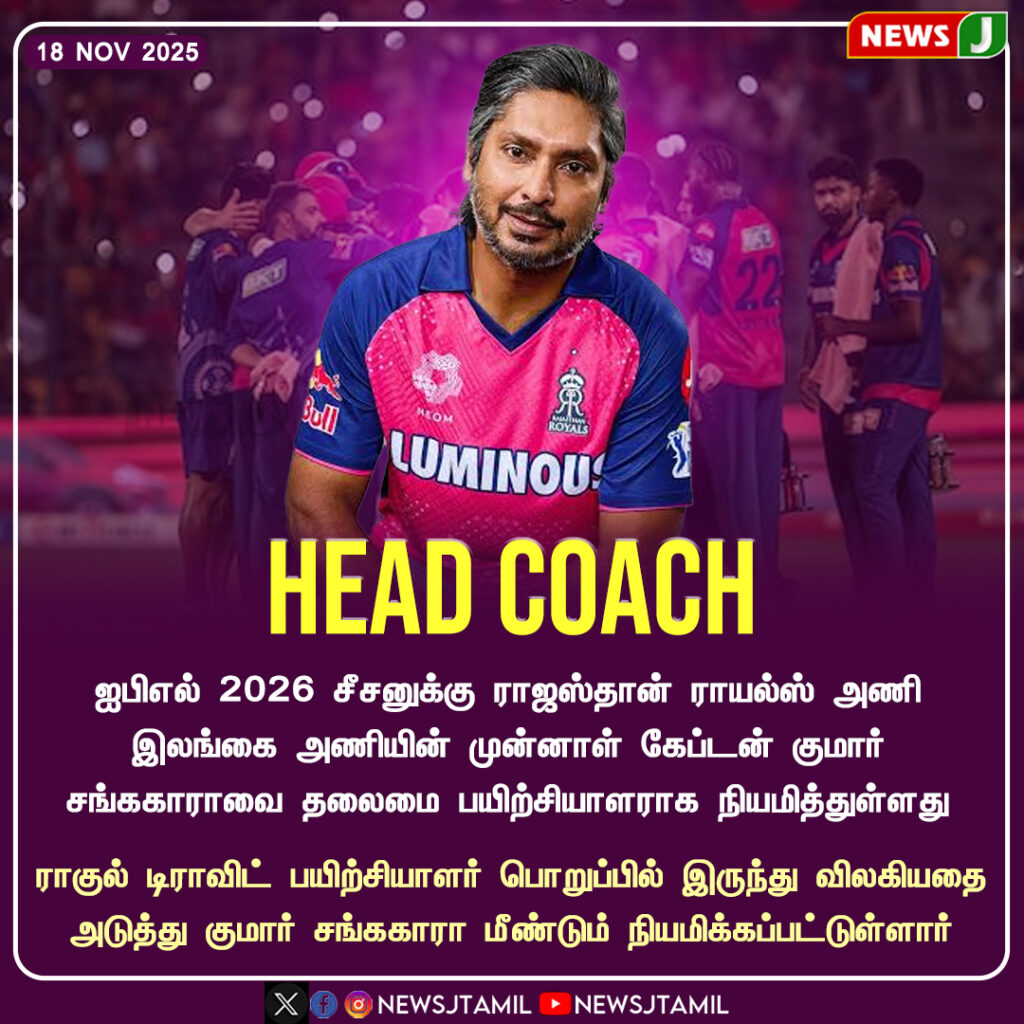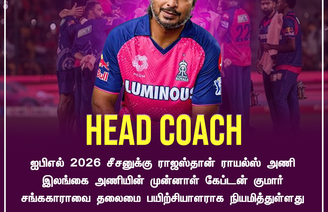 ராஜஸ்தான் அணிக்கான IPL 2026 சீசனுக்கு புதிய தலைமைப் பயிற்சியாளர் நியமிக்கப்பட்டுள்ளது. அணியின் முந்தைய பயிற்சி குழுவில் இருந்த அனுபவம் மற்றும் தொடர்ச்சியான சாதனைகள் காரணமாக இந்த மாற்றம் மேற்கொள்ளப்பட்டதாக தகவல்கள் வெளியாகின்றன.