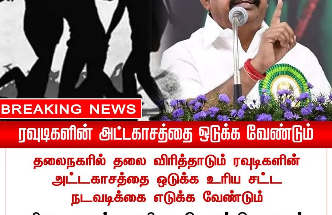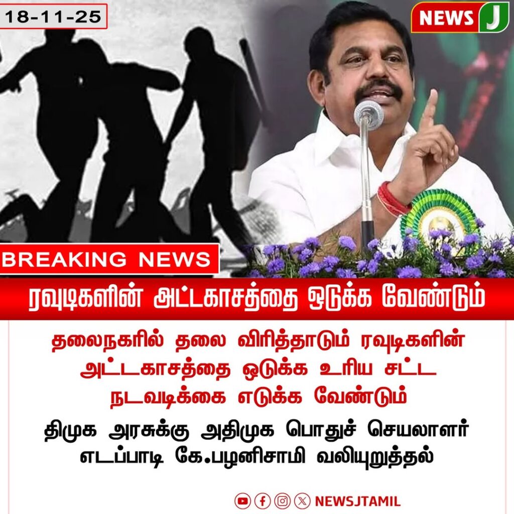 AIADMK leader Edappadi K. Palaniswami has urged the government to take strict legal measures to curb rising rowdyism. He stated that strong enforcement and tougher penalties are necessary to prevent further incidents and protect civilians.