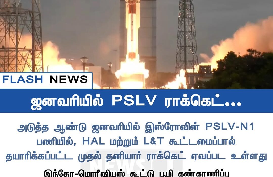 சென்னையில் இருந்து கிடைத்த தகவலின்படி, இந்திய விண்வெளி ஆய்வு மையத்தின் PSLV-N1 பணியில் HAL மற்றும் L&T இணைந்து தயாரித்த முதல் தனியார் ராக்கெட் அடுத்த ஆண்டு ஜனவரியில் விண்ணில் எழும் என அதிகாரப்பூர்வ தகவல்கள் கூறுகின்றன. இந்தோ–மொரீஷியஸ் கூட்டுப் புவி கண்காணிப்பு செயற்கைக்கோளை சுமந்துச் செல்லும் இந்த ராக்கெட், இந்தியாவின் விண்வெளி வலுவை மேலும் உயர்த்தும் முக்கிய முயற்சியாக பார்க்கப்படுகிறது.