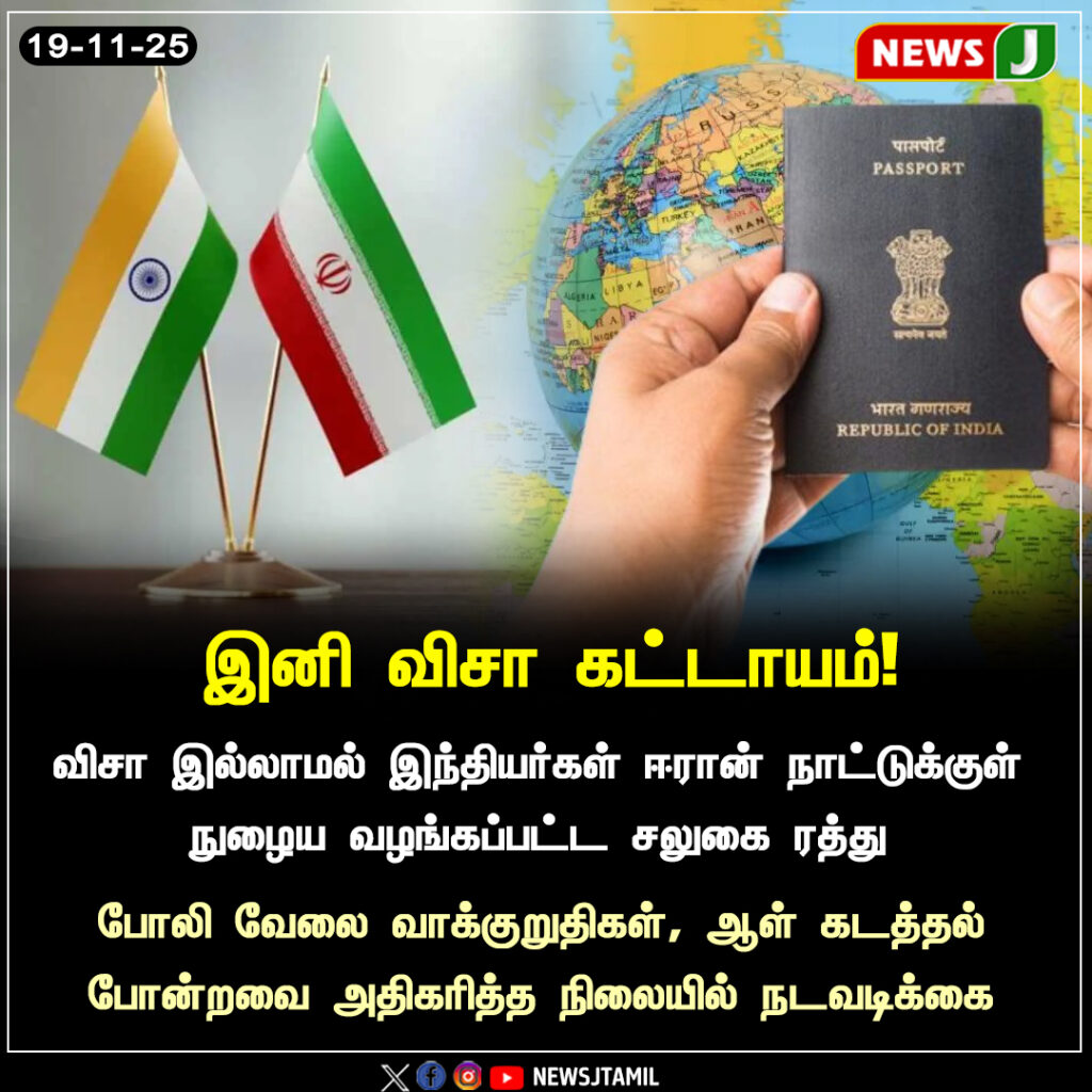 விசா இல்லாமல் இந்தியர்கள் ஈரான் நாடுகளுக்குள் நுழைய வழங்கப்பட்ட சலுகை ரத்து | Visa-free entry for Indians into Iran cancelled