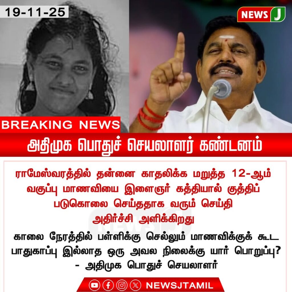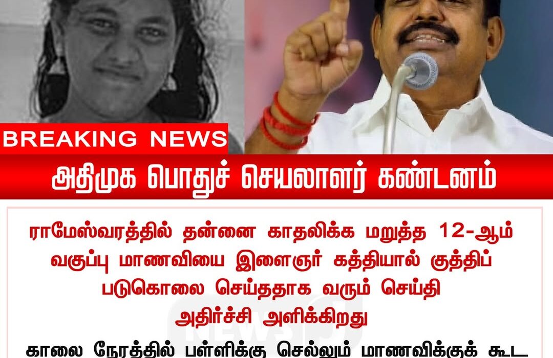 In Ramanathapuram district, the brutal murder of a 12th-grade girl student has sparked statewide outrage. The ADMK General Secretary condemned the incident and questioned the government over the lack of safety measures for young girls.