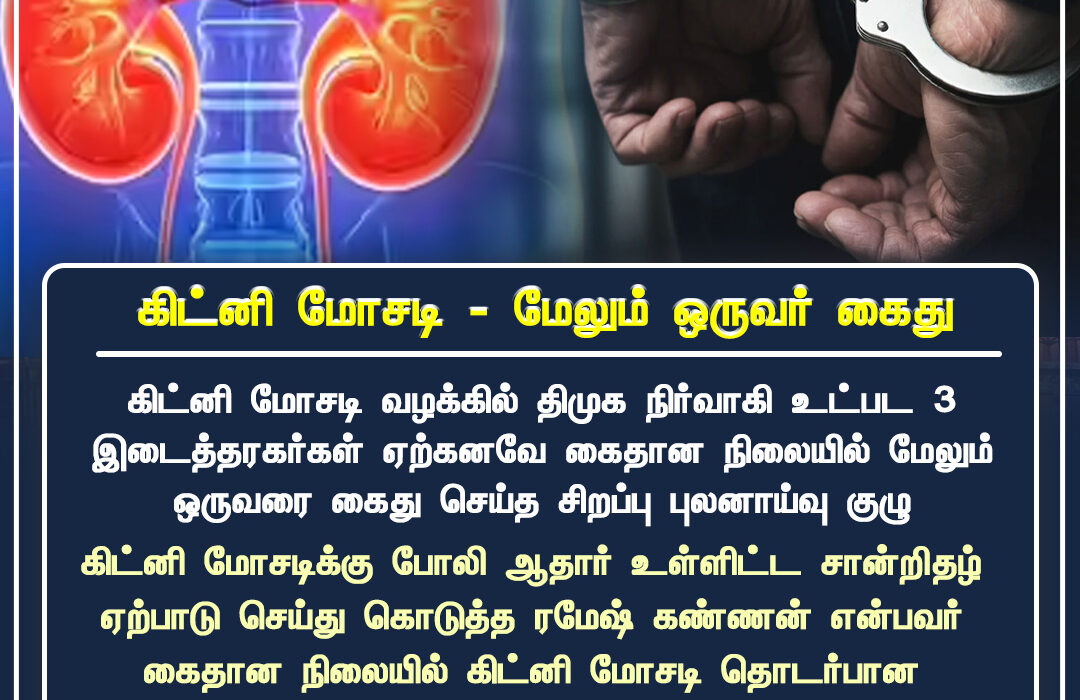கிட்னி மோசடி வழக்கில் மேலும் ஒருவர் கைது | Another person arrested in the ongoing kidney scam case