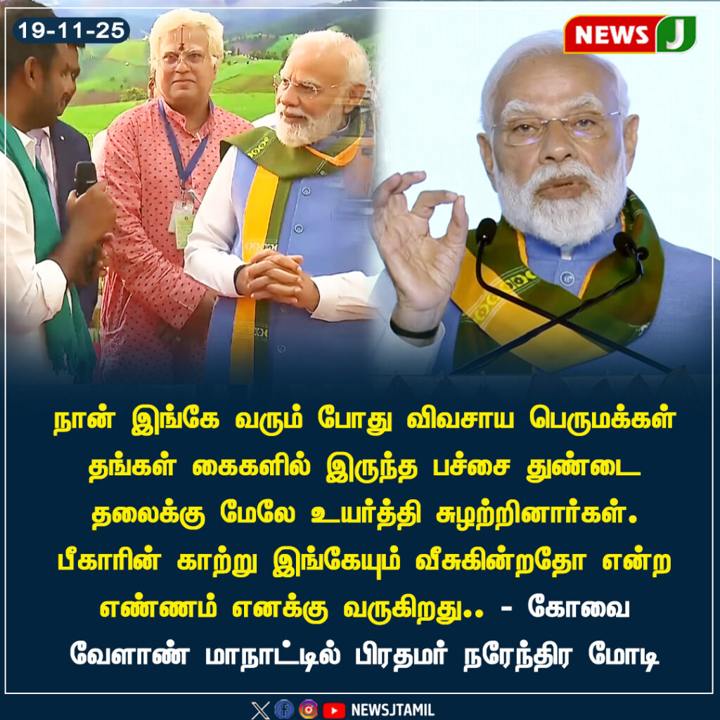 Addressing the gathering in Coimbatore, PM Modi emphasized that the government remains committed to protecting farmers’ welfare and assured that several new initiatives would be announced soon.