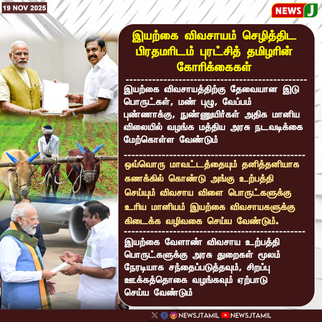 ஒவ்வொரு மாவட்டத்திலும் சிறப்பு மையங்கள் அமைத்து, இயற்கை விவசாயப் பொருட்களை குறைந்த விலையில் வழங்க வேண்டும் என்ற கோரிக்கை மேலும் வலுப்பெற்றுள்ளது. தரமான உள்பொருட்கள் மற்றும் பயிற்சிகளை அரசு நேரடியாக வழங்கினால் மட்டுமே விவசாயம் செழிக்க முடியும் என்று விவசாயிகள் கருத்து தெரிவிக்கின்றனர்.