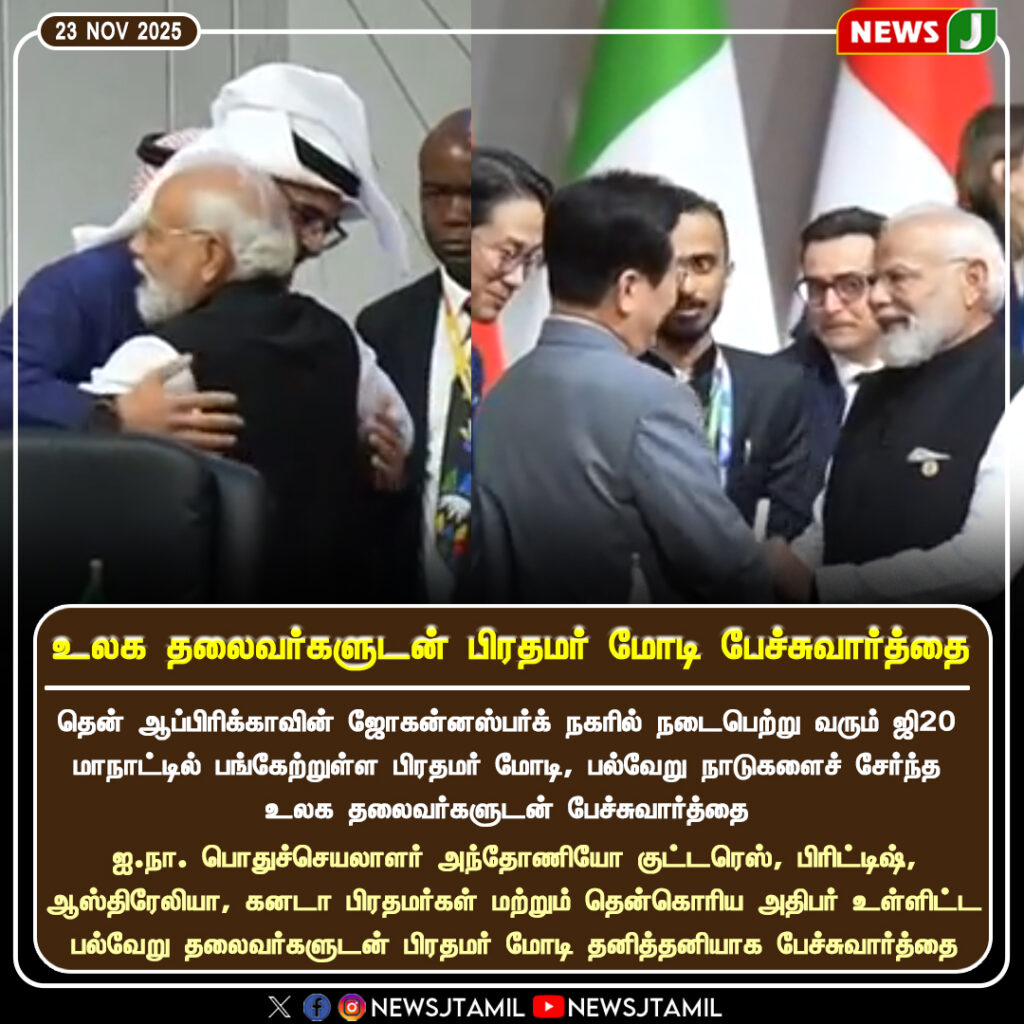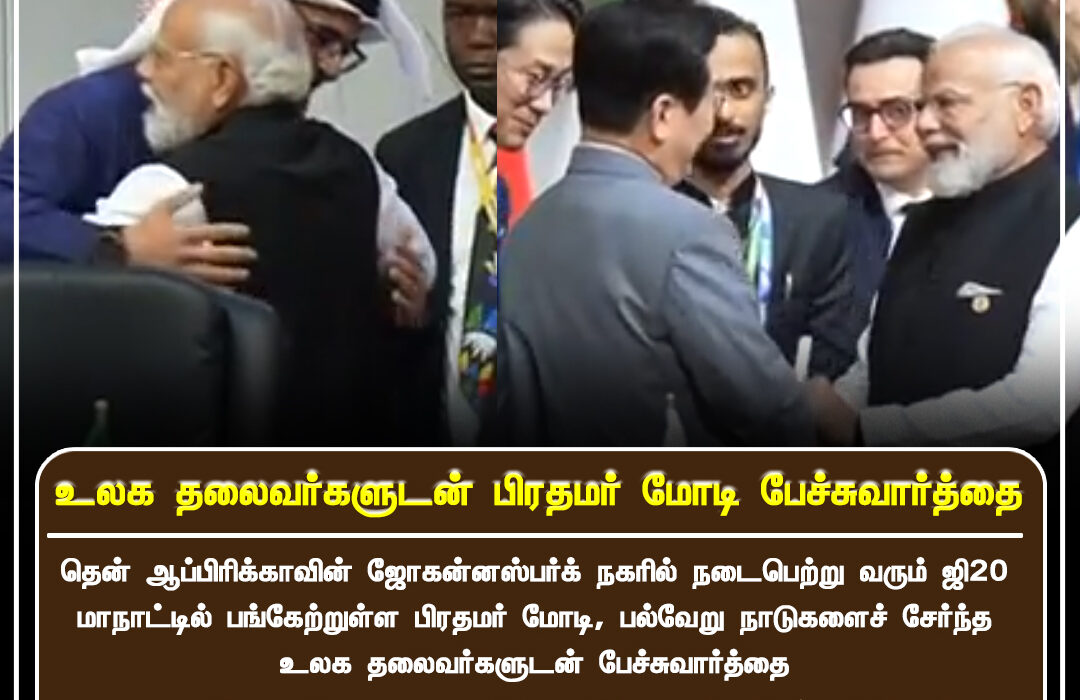 தென் ஆப்பிரிக்காவின் ஜொஹன்ஸ்பர்கில் நடைபெற்று வரும் ஜி20 மாநாட்டில் பங்கேற்ற பிரதமர் நரேந்திர மோடி, பல்வேறு நாடுகளின் தலைவர்களுடன் சந்தித்து இருதரப்பு உறவுகள், உலக பொருளாதாரம் மற்றும் பிராந்திய நிலைமை குறித்து முக்கிய ஆலோசனைகள் நடத்தினார்.