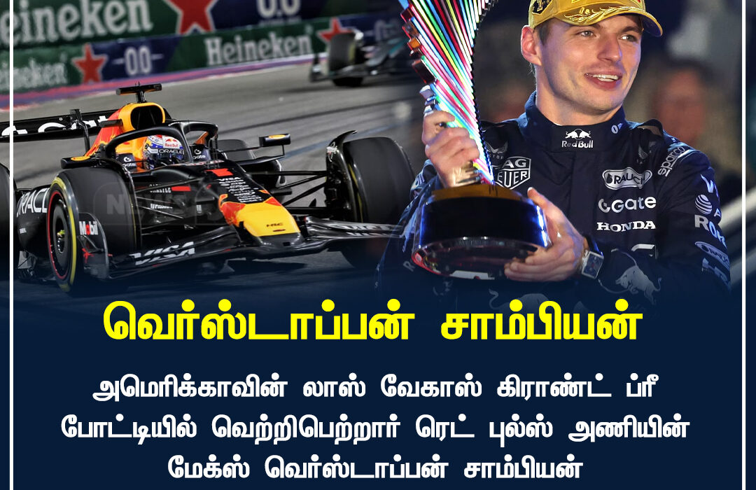 லாஸ் வேகாஸ் சர்க்யூட்டில் நடைபெற்ற கிராண்ட் பிரி போட்டியில் முத்திரை பதித்து முதலிடம் பிடித்து ரெட் புல்ஸ் அணிக்கு வெற்றியை வழங்கினார் மேக்ஸ் வெர்ஸ்டாபன். இந்த சீசனில் அவர் காட்டும் ஆட்டத்திற்கு உலகம் முழுவதும் ரசிகர்கள் பாராட்டு தெரிவித்து வருகின்றனர்.