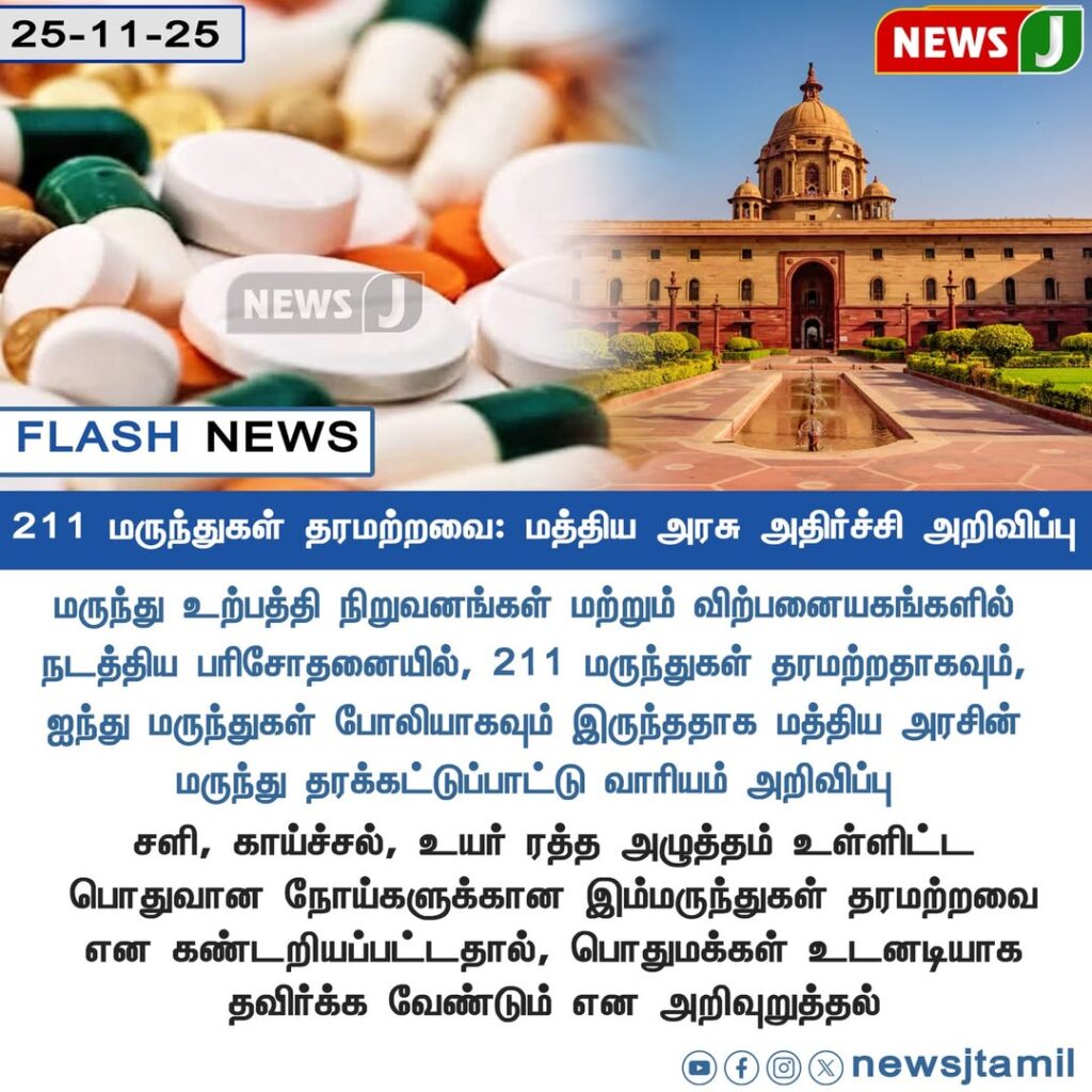 211 மருந்துகள் தரமற்றவை என மத்திய அரசு அறிவிப்பு | Govt announces ban on 211 substandard medicines