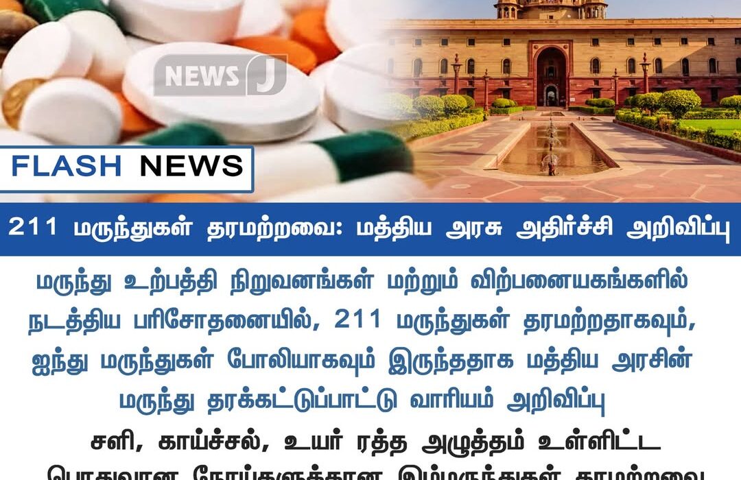 The Central Government has officially banned 211 substandard medicines after nationwide inspections across hospitals and pharmacies. These drugs failed mandatory quality-control tests and were deemed unsafe for public use.