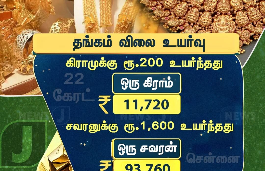 சவரன் விலையும் அதிகரித்து ரூ.1,600 உயர்வுடன் ரூ.93,760 என்ற நிலைக்கு வந்துள்ளது. திருமண பருவம் மற்றும் சர்வதேச சந்தை மாற்றங்கள் காரணமாக தங்கம் விலை தொடர்ந்து உயர்ந்து வருகிறது.