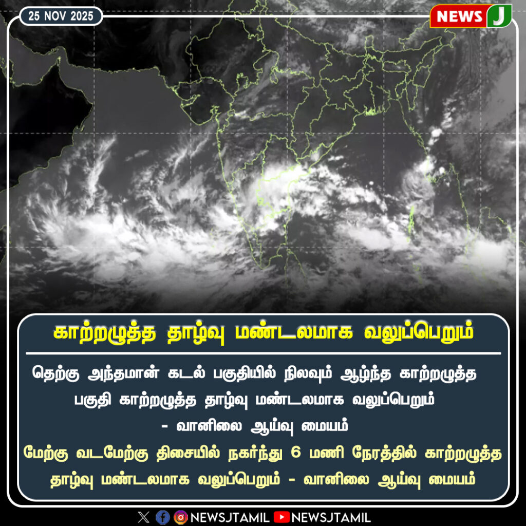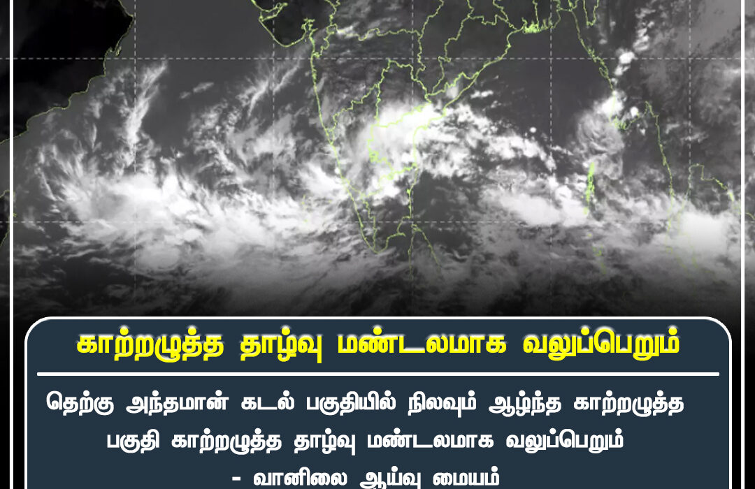 தெற்கு அண்டமான் கடல் பகுதியில் இருக்கும் காற்றழுத்தத் தாழ்வு, இன்று மேலும் வலுப்பெற்று தீவிர தாழ்வாக மாறும் என வானிலை மையம் தெரிவித்துள்ளது | The low-pressure area over South Andaman Sea is expected to intensify into a deep depression today, according to the Meteorological Department