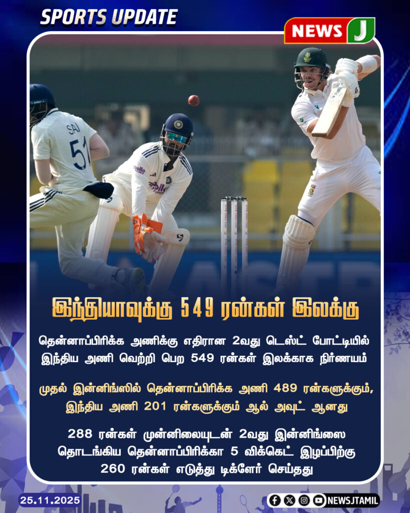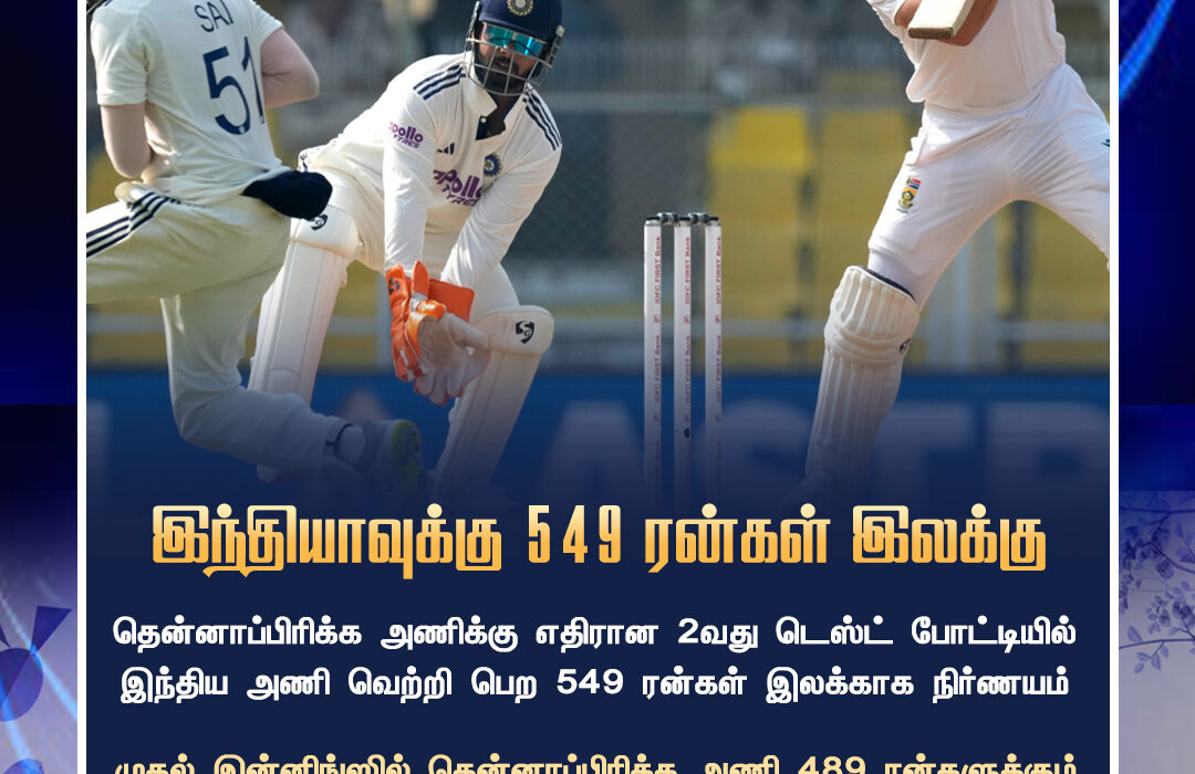 சென்னாபுரிக்க அணிக்கு எதிரான 2வது டெஸ்ட் போட்டியில் இந்தியா அணிக்கு வெற்றி பெற 549 ரன்கள் இலக்காக நிர்ணயிக்கப்பட்டுள்ளது.