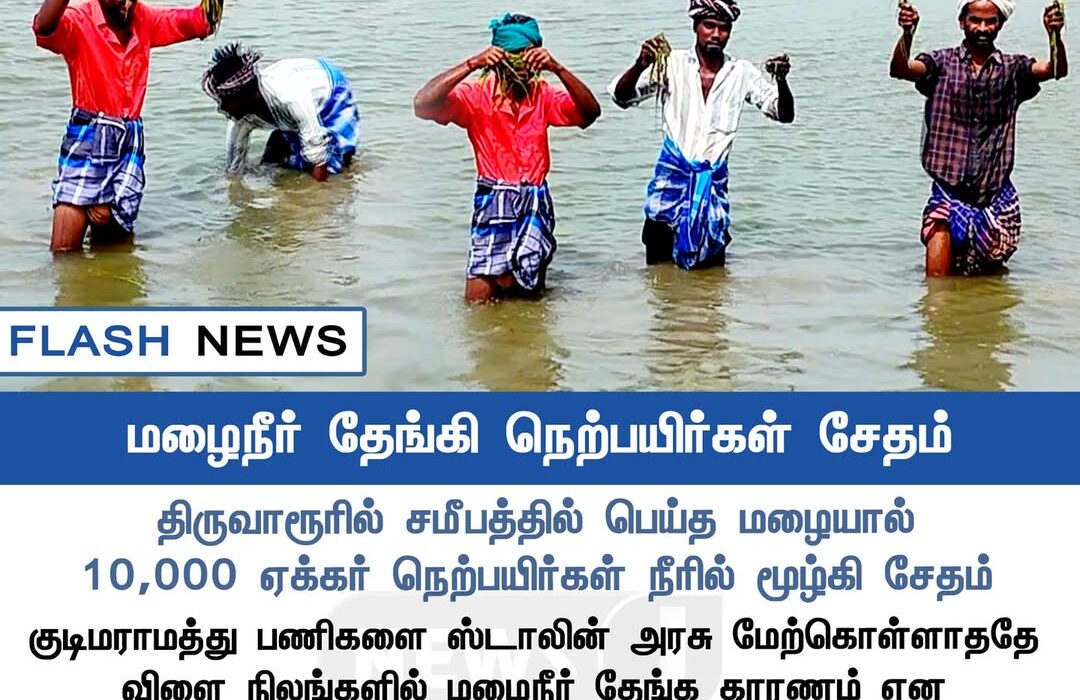 திருவாரூர் மாவட்டத்தில் கடந்த சில நாட்களாக நீடித்து வரும் பருவமழை காரணமாக, பல ஊரக பகுதிகளில் விவசாய நிலங்கள் நீரில் மூழ்கின. சுமார் 10,000 ஏக்கருக்கு மேற்பட்ட நெற்பயிர்கள் மழைநீரால் பாதிக்கப்பட்டுள்ளதாக ஆரம்ப கணக்கெடுப்பில் தெரிவிக்கப்பட்டுள்ளது.