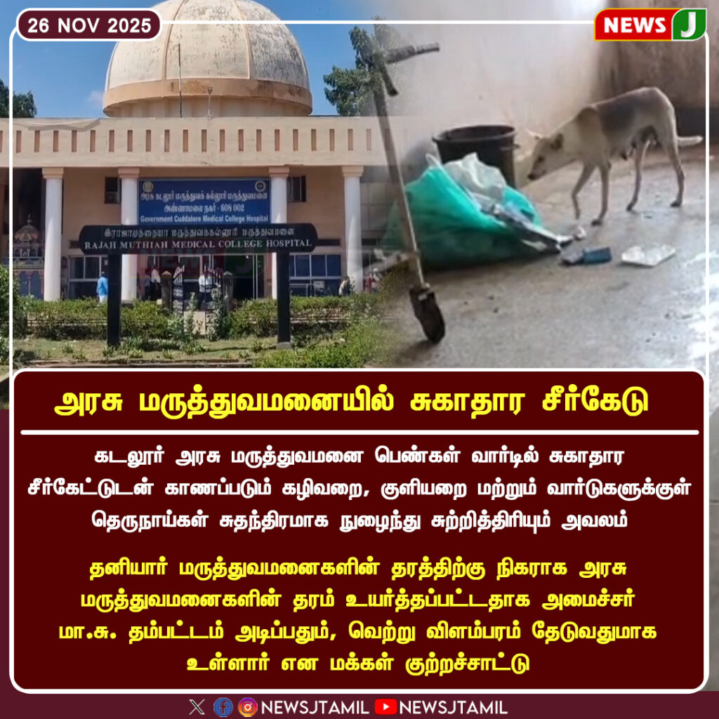 Residents in Cuddalore have raised serious concerns about poor hygiene in the women’s ward of the Government Hospital. Piles of waste, foul smell, and unclean surroundings are reportedly making conditions unsafe for patients, affecting their recovery.