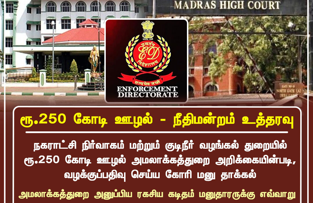 The High Court has refused to accept the Enforcement Directorate’s plea in the alleged ₹250 crore corruption case involving the municipal administration and water supply department. The court questioned how a confidential letter alone could be considered sufficient evidence.