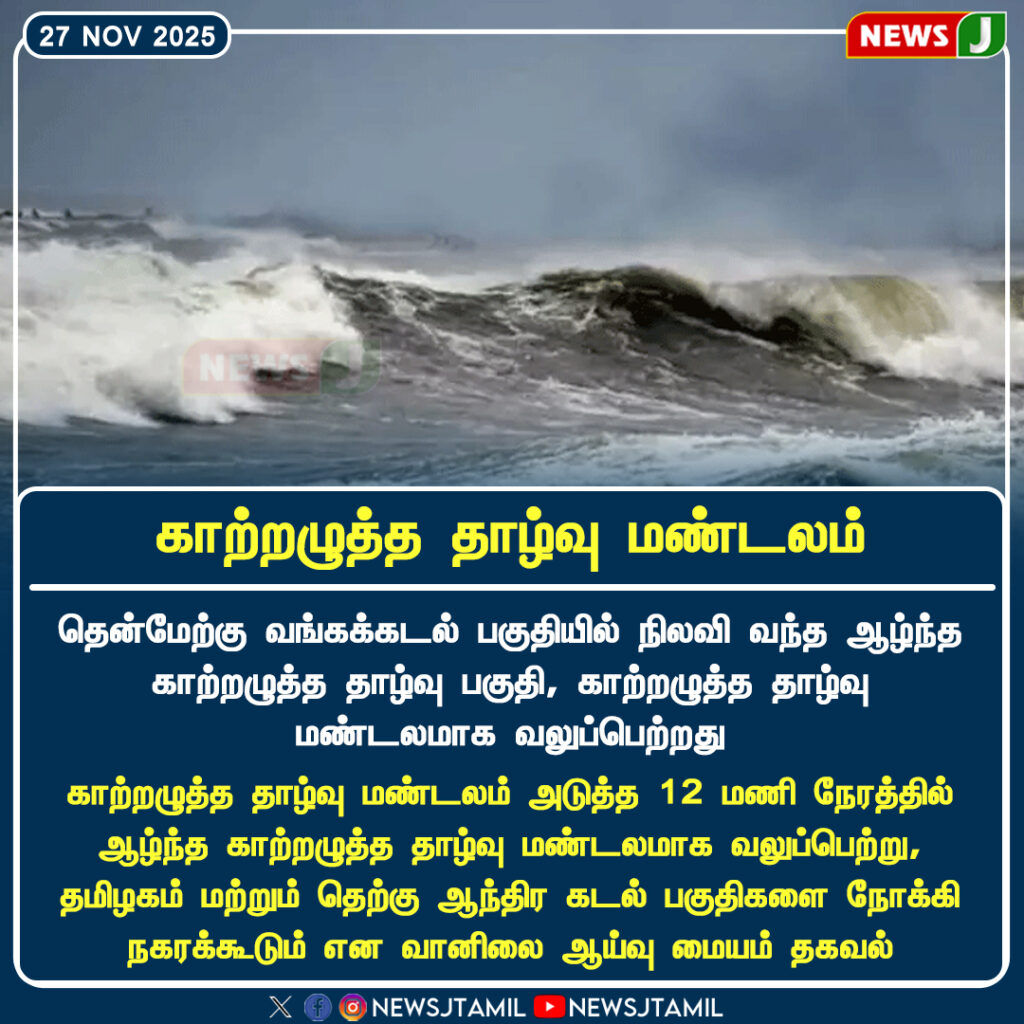 வங்கக்கடலில் உருவான காற்றழுத்தத் தாழ்வு இன்று வலுப்பெற வாய்ப்பு. | Bay low-pressure system expected to intensify today.