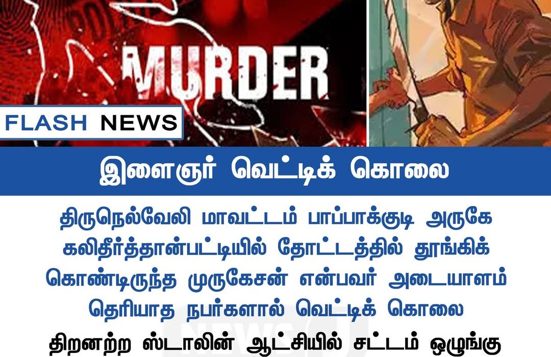 A man identified as Murugesan was hacked to death following a sudden clash near Papakudi in Tirunelveli district. Police are investigating the motive behind the attack and searching for the suspects involved. Residents of the area remain in fear as security has been tightened.
