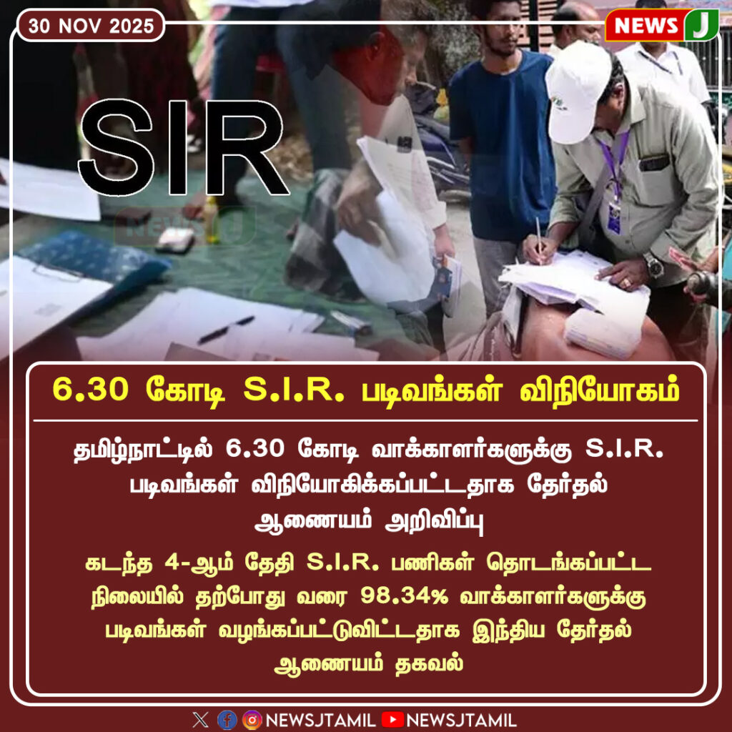 The Election Commission has announced the release of 6.30 crore S.I.R. forms for voters across Tamil Nadu. The state-wide voter verification and update process is progressing rapidly, with officials distributing forms at doorstep levels.