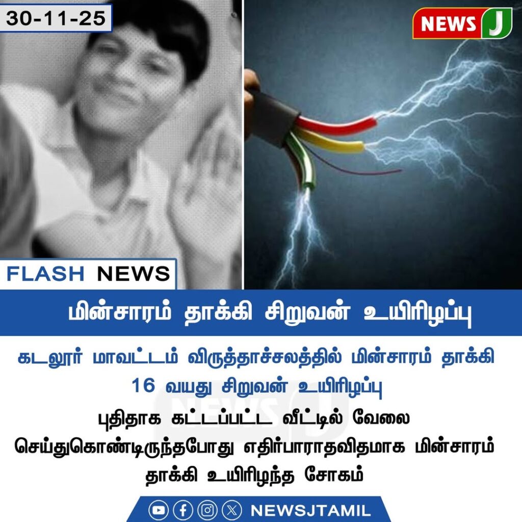A 16-year-old boy tragically died in Virudhachalam, Cuddalore district, after he was accidentally electrocuted while working at a newly constructed house. The sudden incident has left the local residents in deep shock.