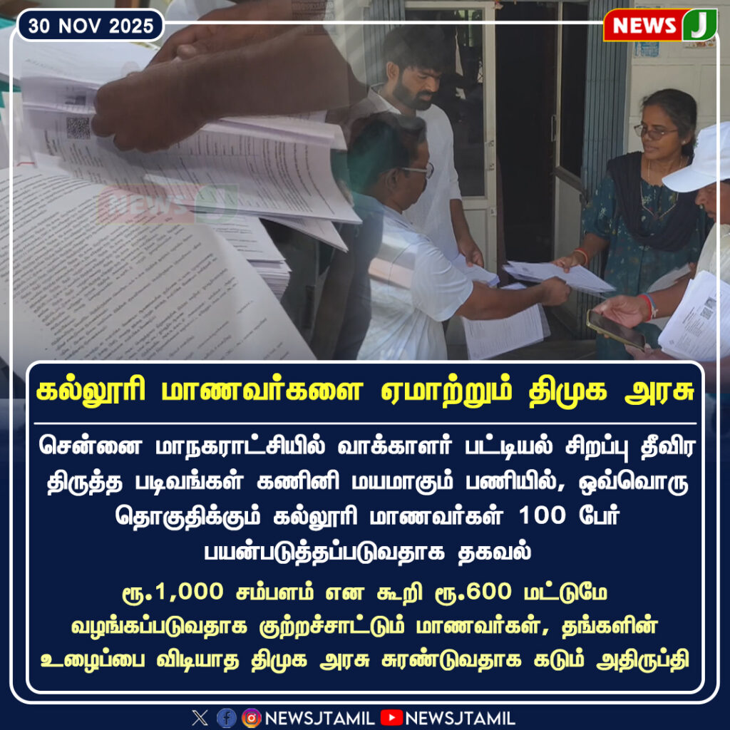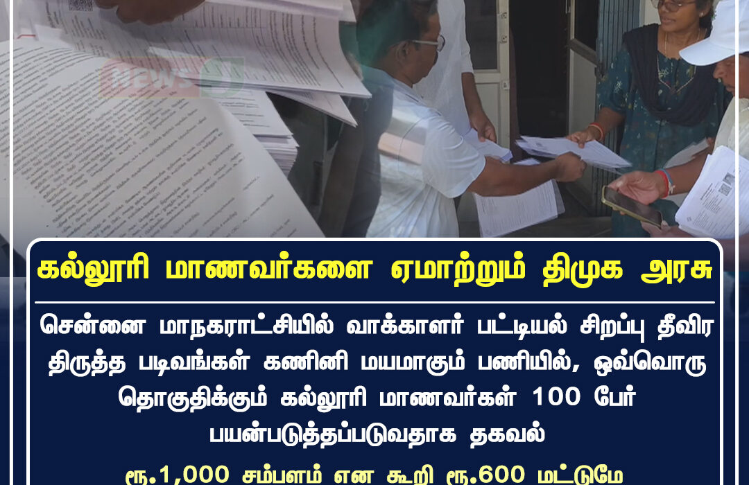 In Chennai, college students have reportedly been engaged in the intensive electoral roll correction work across various constituencies. Around 100 students per zone were said to be deployed without proper guidance or clarity on responsibilities.