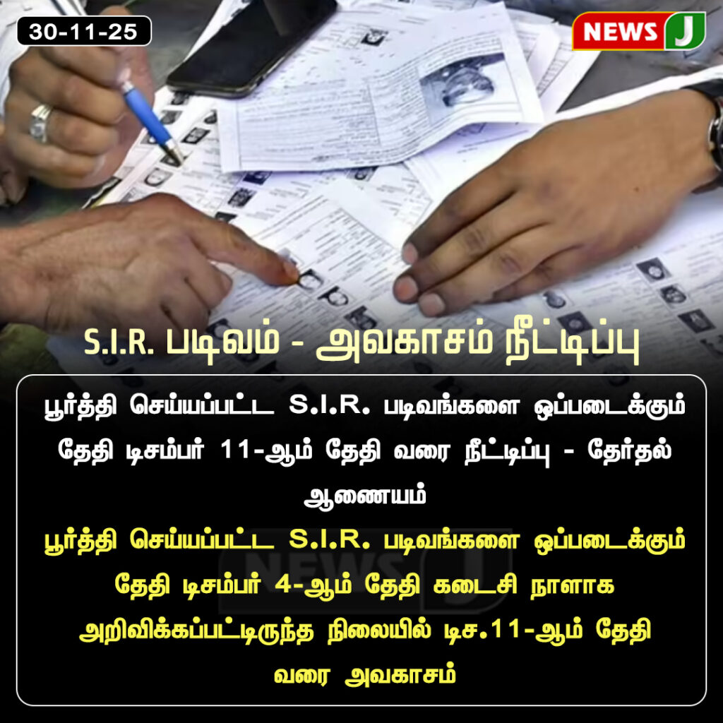 S.I.R. படிவ சமர்ப்பிப்புக்கு புதிய அவகாசம் வழங்கப்பட்டது | New deadline announced for S.I.R. form submission