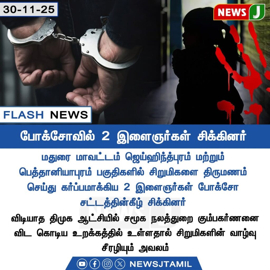 Two youths have been arrested in Madurai under the POCSO Act after allegations surfaced that they had been harassing minor girls. Authorities have taken the children into safe custody, and officials emphasised the need for stronger community vigilance to prevent such crimes.