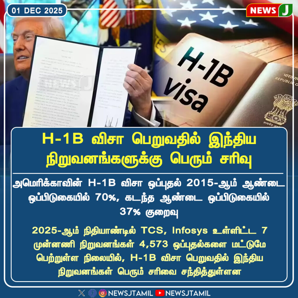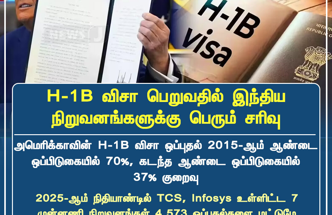 TCS, Infosys உள்ளிட்ட ஏழு முன்னணி இந்திய நிறுவனங்களே இந்த ஆண்டு மொத்தம் 4,573 தேர்வு செய்யப்பட்ட விண்ணப்பங்களை பெற்றுள்ளதாக தகவல் வெளியாகியுள்ளது. கடந்த ஆண்டுகளுடன் ஒப்பிடுகையில் இது அதிகரிப்பு என்பதால், இந்திய நிறுவனங்களின் அமெரிக்க பணியமர்த்தல் திட்டங்களுக்கு இது பெரும் ஊக்கமாக உள்ளது.