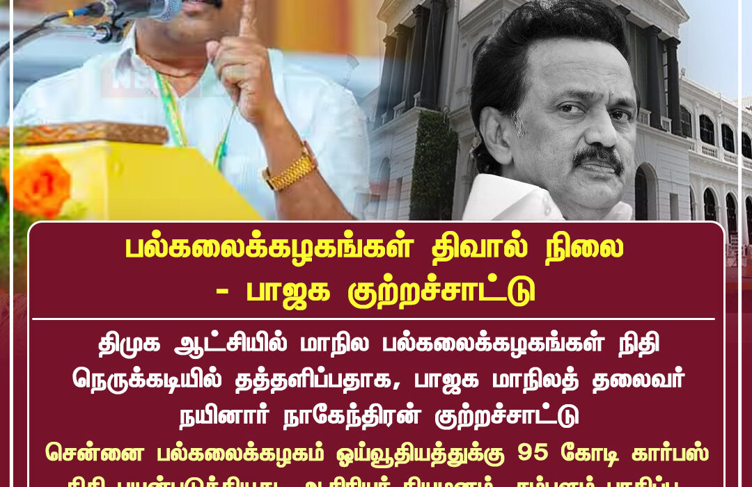 தமிழக அரசின் நிர்வாகத் தோல்வியால் பல்கலைக்கழகங்கள் நிதி நெருக்கடியில் சிக்கியுள்ளதாக பாஜக குற்றம்சாட்டுகிறது | BJP claims poor governance has pushed Tamil Nadu universities into a financial crisis