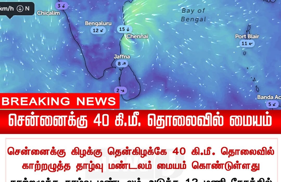 சென்னைக்கு கிழக்கே வங்கக்கடல் பகுதியில் நிலவும் காற்றழுத்த தாழ்வு மண்டலத்தின் தாக்கம் காரணமாக, 2025 டிசம்பர் 2 முதல் நகரில் காற்றின் வேகம் அதிகரிக்க வாய்ப்பு இருப்பதாக வானிலை ஆய்வு மையம் தெரிவித்துள்ளது.