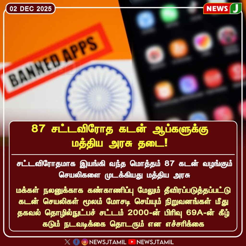 தேசிய பாதுகாப்பு மற்றும் தரவு பாதுகாப்பு காரணமாக 87 வெளிநாட்டு செயலிகளுக்கு மத்திய அரசு தடை விதித்துள்ளது | Citing national security and data protection concerns, the Union Government has banned 87 foreign apps