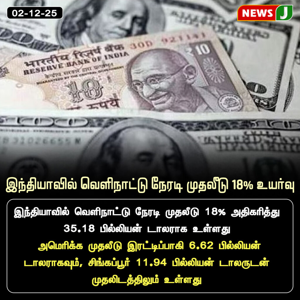 2025 டிசம்பர் 2 நிலவரப்படி, இந்தியாவின் வெளிநாட்டு நாணய கையிருப்பு 18 சதவீதம் உயர்ந்து 35.18 பில்லியன் டாலராக உயர்ந்துள்ளதாக அதிகாரப்பூர்வ தரவுகள் தெரிவிக்கின்றன. இந்த உயர்வு இந்திய பொருளாதாரத்திற்கு சாதகமான அறிகுறியாக பார்க்கப்படுகிறது.