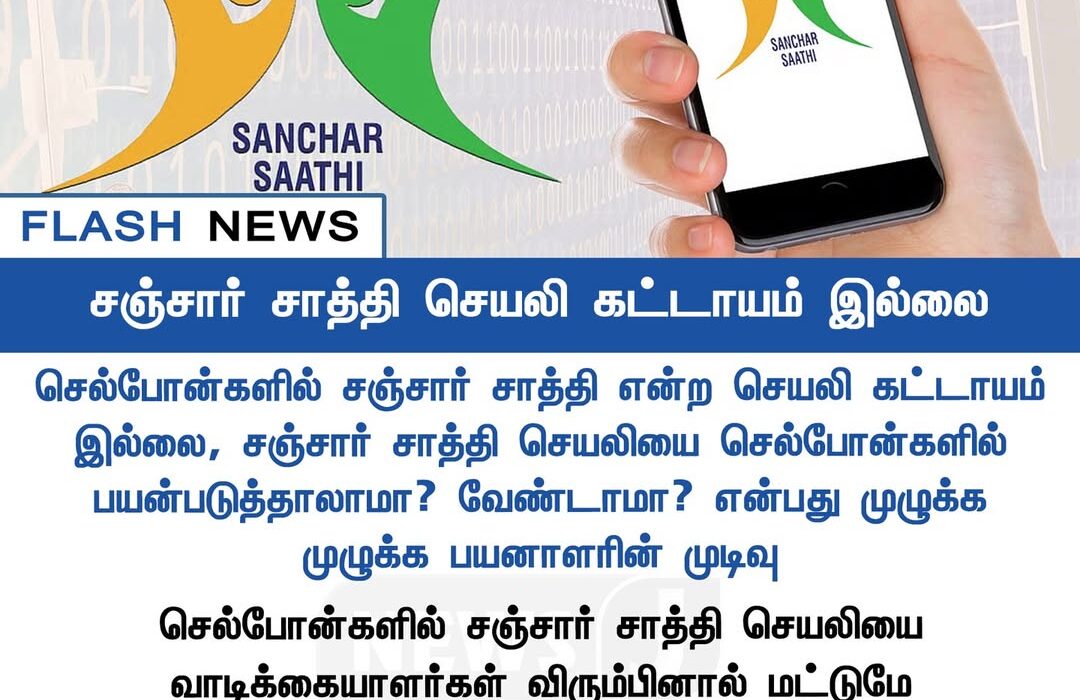 செல்போன்களில் “சஞ்சார் சாத்தி” செயலியை கட்டாயமாக நிறுவ வேண்டும் என்ற தகவல் தவறானது என மத்திய அரசு தெரிவித்துள்ளது. இந்தியாவில் பயன்படுத்தப்படும் மொபைல் இணைப்புகளை பாதுகாக்கவும், போலி சிம் கார்டுகள் மற்றும் மோசடிகளைத் தடுப்பதற்காகவே Sanchar Saathi தளம் உருவாக்கப்பட்டுள்ளது.