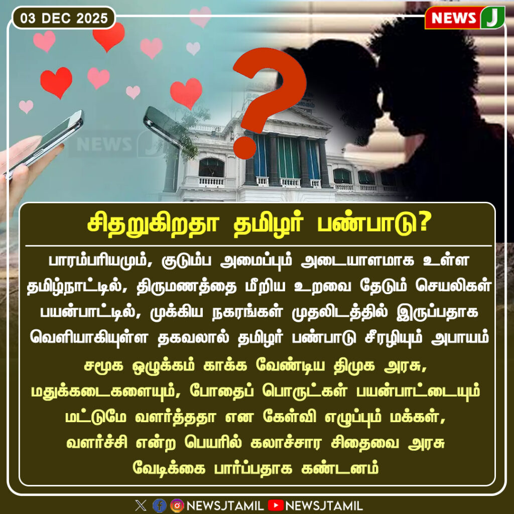 In Tamil Nadu, the growing influence of social media, dating apps, and modern lifestyles is rapidly changing how young people view relationships. Many believe that traditional family structures and cultural values are being pushed to the background.