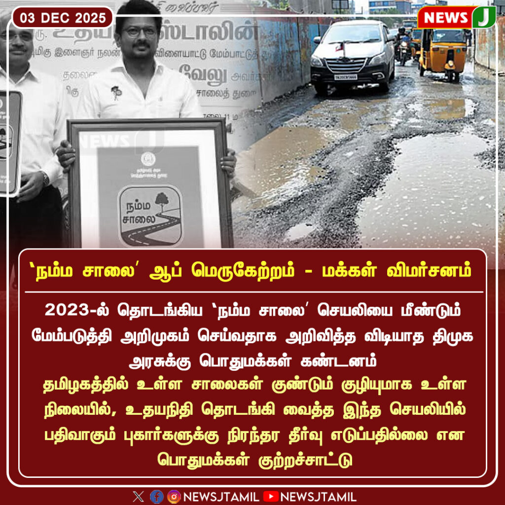 Launched in 2023, the ‘Namma Salai’ app was introduced to allow citizens across Tamil Nadu to report poor road conditions and related issues. Initially, the app received positive attention, but complaints soon emerged that many reports were not addressed in a timely manner.