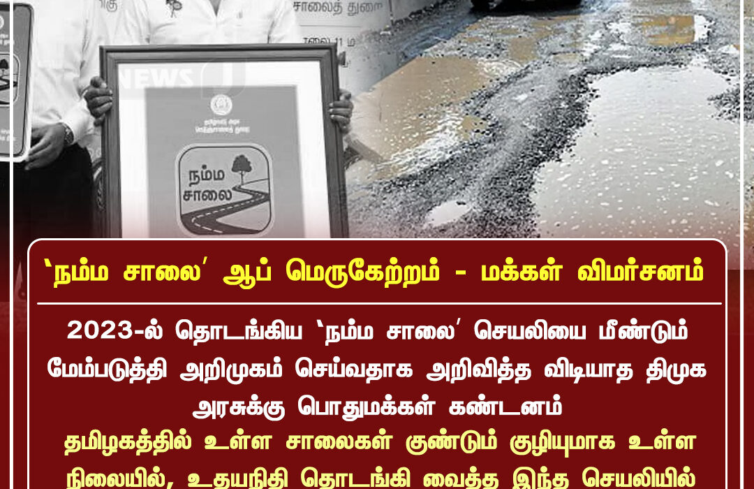 2023-ல் தொடங்கப்பட்ட ‘நம்ம சாலை’ செயலி மூலம் தமிழ்நாடு முழுவதும் உள்ள சாலைகளின் நிலையை பொதுமக்கள் புகார் அளிக்க வசதி செய்யப்பட்டது. இந்த செயலி தொடக்கத்தில் நல்ல வரவேற்பைப் பெற்றாலும், புகார்கள் மீது உடனடி நடவடிக்கை எடுக்கப்படவில்லை என்ற குற்றச்சாட்டு தொடர்ந்து எழுந்தது.