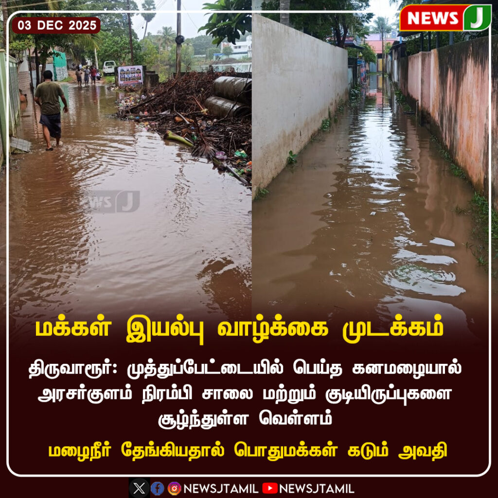 On December 3, 2025, heavy rainfall in Tiruvallur district disrupted normal life as several areas were inundated. Roads were submerged, making daily commuting difficult for residents.
