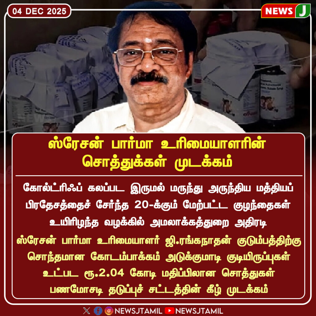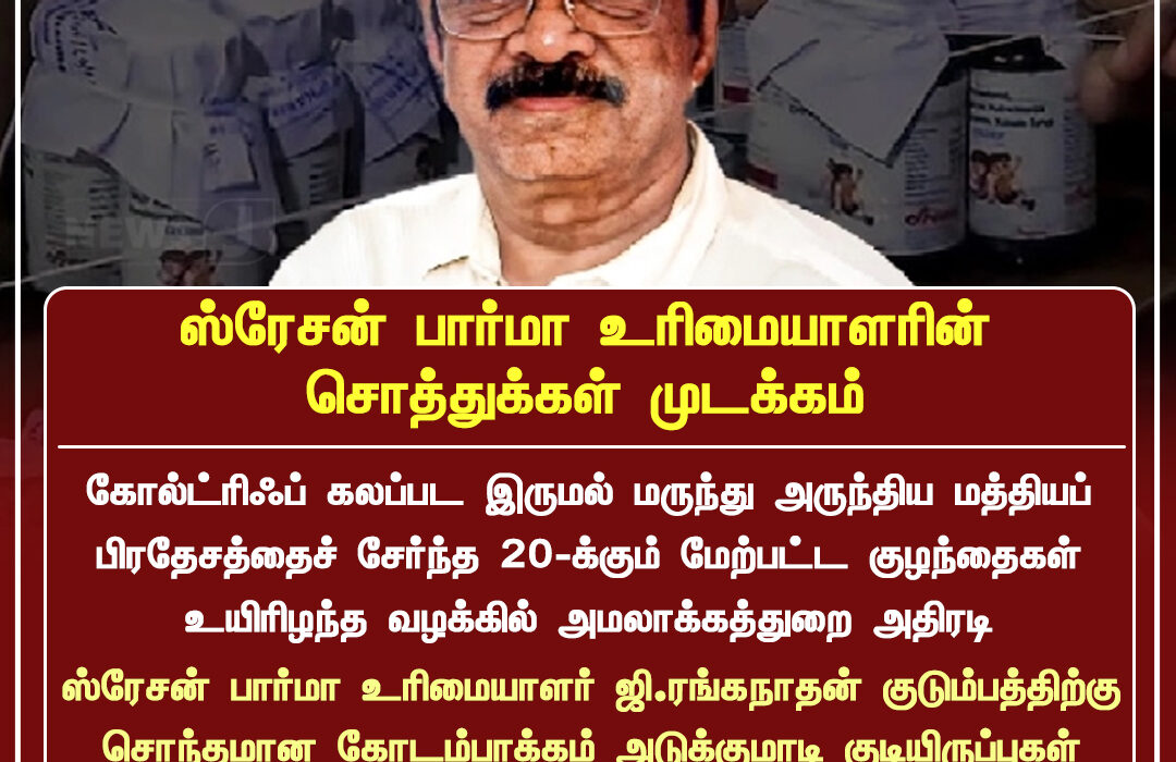 Following allegations of irregularities in medicines imported via cargo vessels, authorities have intensified the probe against Station Pharma owner G. Ranganathan. Officials confirmed that assets allegedly linked to illegal trade have been frozen.
