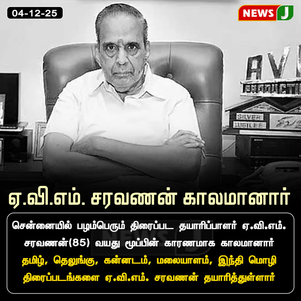On December 04, 2025, renowned cinema theatre entrepreneur and EVM Group chairman EVM Saravanan (85) passed away in Chennai. Family sources stated that he died due to age-related health issues.