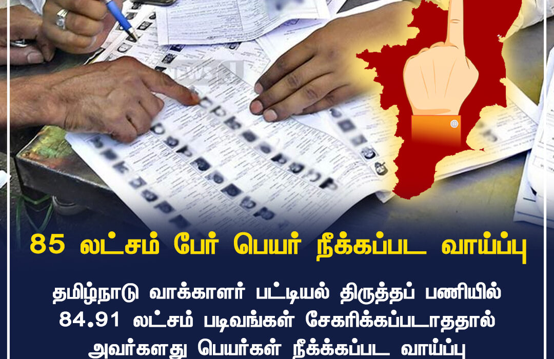 During the voter list revision process in Tamil Nadu, election authorities have stated that around 84.91 million records were verified. This included identification of ineligible voters, migrants, and duplicate entries.