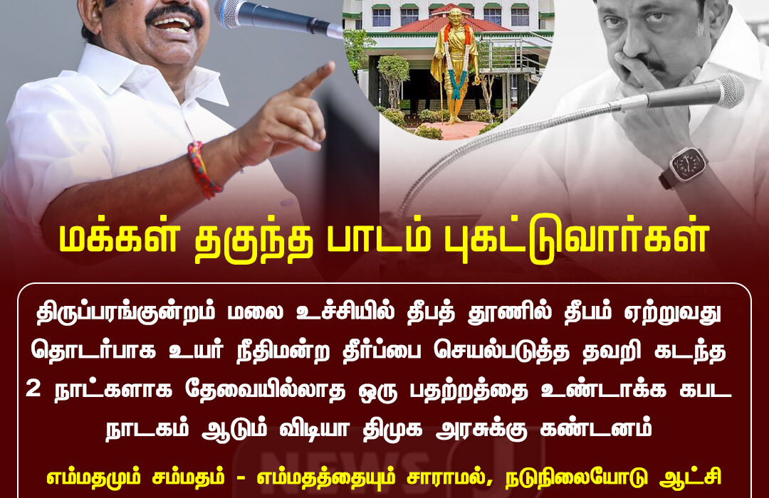 The controversy over the lighting of the sacred fire at the Thirupparankundram hilltop has triggered sharp political reactions. Opposition parties have alleged that the DMK government failed to take timely and appropriate action on the issue.
