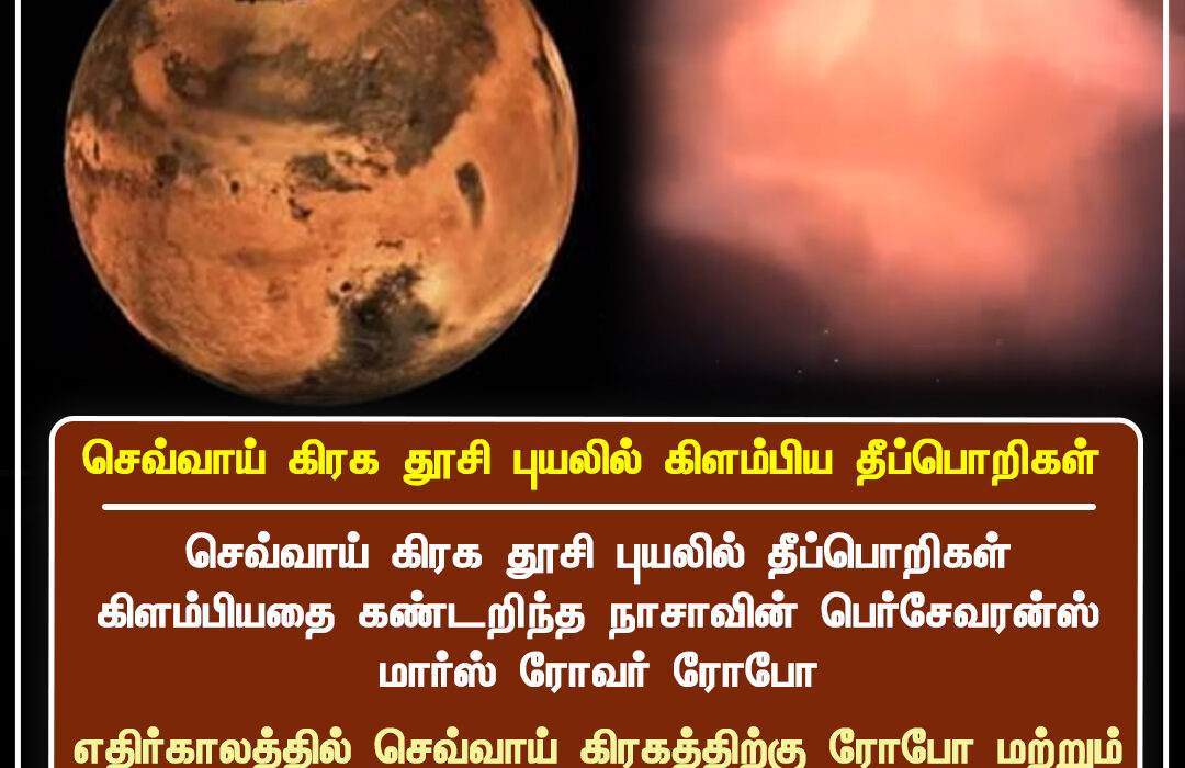 2025 டிசம்பர் 5 அன்று, செவ்வாய் கிரகத்தில் ஏற்பட்ட தூசி புயல் செயல்பாடுகளின்போது வெளிச்சம் போன்ற தீப்பொறி நிகழ்வுகள் பதிவாகியுள்ளதாக தகவல்கள் வெளியாகியுள்ளன. நாசாவின் ஆய்வு கருவிகள் மூலம் சேகரிக்கப்பட்ட தரவுகளை விஞ்ஞானிகள் ஆய்வு செய்து வருகின்றனர்.
