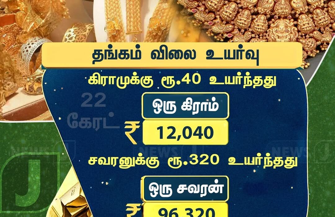 அதேபோல், ஒரு சவரன் தங்கத்தின் விலை ரூ.320 உயர்ந்து ரூ.96,320 ஆக நிர்ணயிக்கப்பட்டுள்ளது. கடந்த சில நாட்களாக தங்கம் விலை ஏற்ற இறக்கங்களுடன் இருந்து வரும் நிலையில், இன்றைய உயர்வு நகை வாங்குவோருக்கு சற்று கூடுதல் செலவாகும் சூழலை உருவாக்கியுள்ளது.