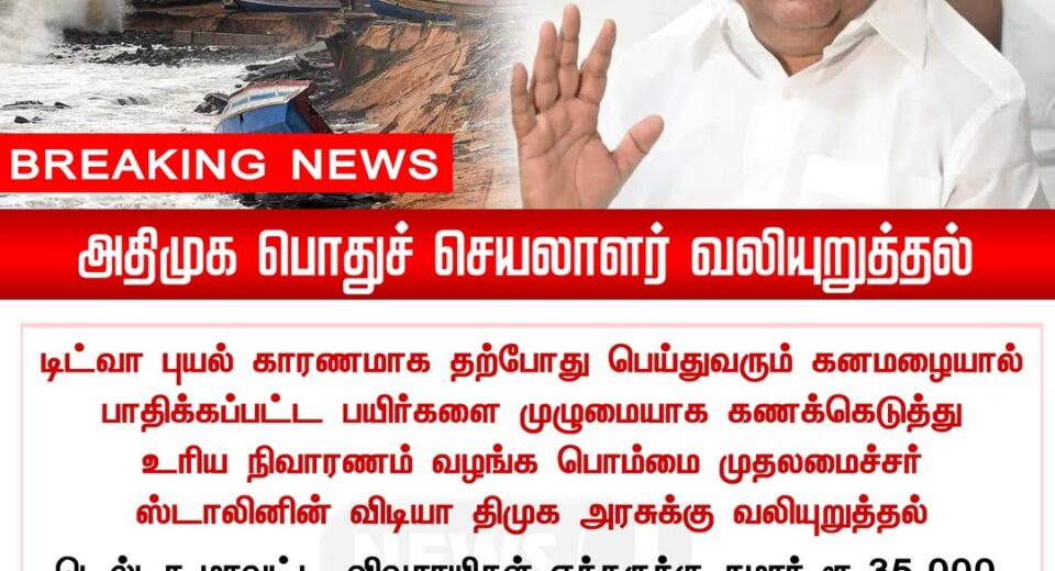 டிட்ட்வா புயல் பாதிப்பு – அதிமுக பொதுச் செயலாளர் வலியுறுத்தல் | AIADMK Leader’s Statement on Titli Cyclone Damage