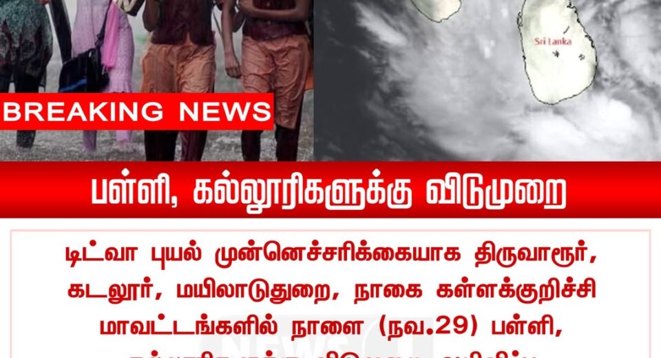 டிட்வா புயல் முன்னெச்சரிக்கையாக பல மாவட்டங்களில் அறிவிப்பு | Holiday announced due to Cyclone Titva alert