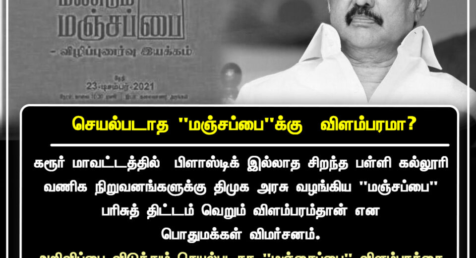 கள்ளக்குறிச்சி பகுதியில் செயல்படாத மஞ்சப்பை திட்ட விளம்பரம் விவாதம் | Advertisement sparks questions in Kallakurichi